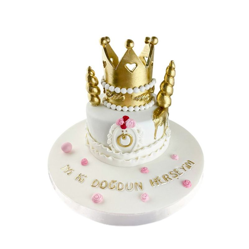 Pastanın üstünde detaylı olarak tasarlanmış altın taç figürü, romantik süslemeler ve özel bir mesaj veya isim detayları yer alıyor. Renk seçenekleri ve kişiselleştirilebilir detaylarıyla bu pasta, sevgilinizin tarzını ve zevkini en iyi şekilde yansıtarak romantik bir atmosfer sunuyor.