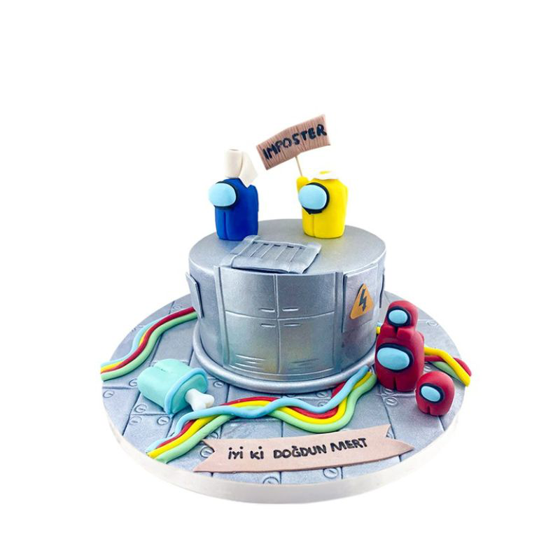 Pastanın üst kısmında, Aramızda oyununun karakterlerini andıran şeker hamuru detayları pastayı adeta bir uzay üssüne dönüştürüyor. Renkli astronotlar arasında geçen sürükleyici oyun teması, pastanın üzerindeki detaylarla can buluyor. Renkli şeker hamuru ile yapılmış astronotlar, pastayı adeta bir oyun sahnesine çeviriyor.