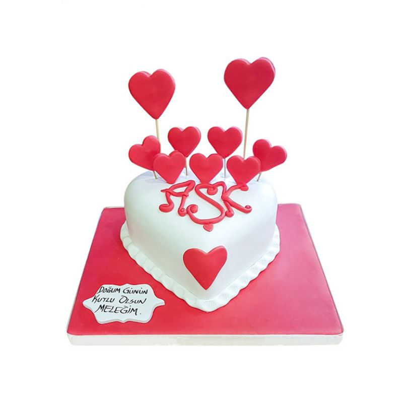 Pastanın kırmızı ve beyaz renkleri, aşkın tutkusunu ve saflığını yansıtarak pastaya duygusal bir derinlik kazandırır. Bu renkler, sevgilinizle paylaştığınız duyguların ve anıların anlamını vurgular.