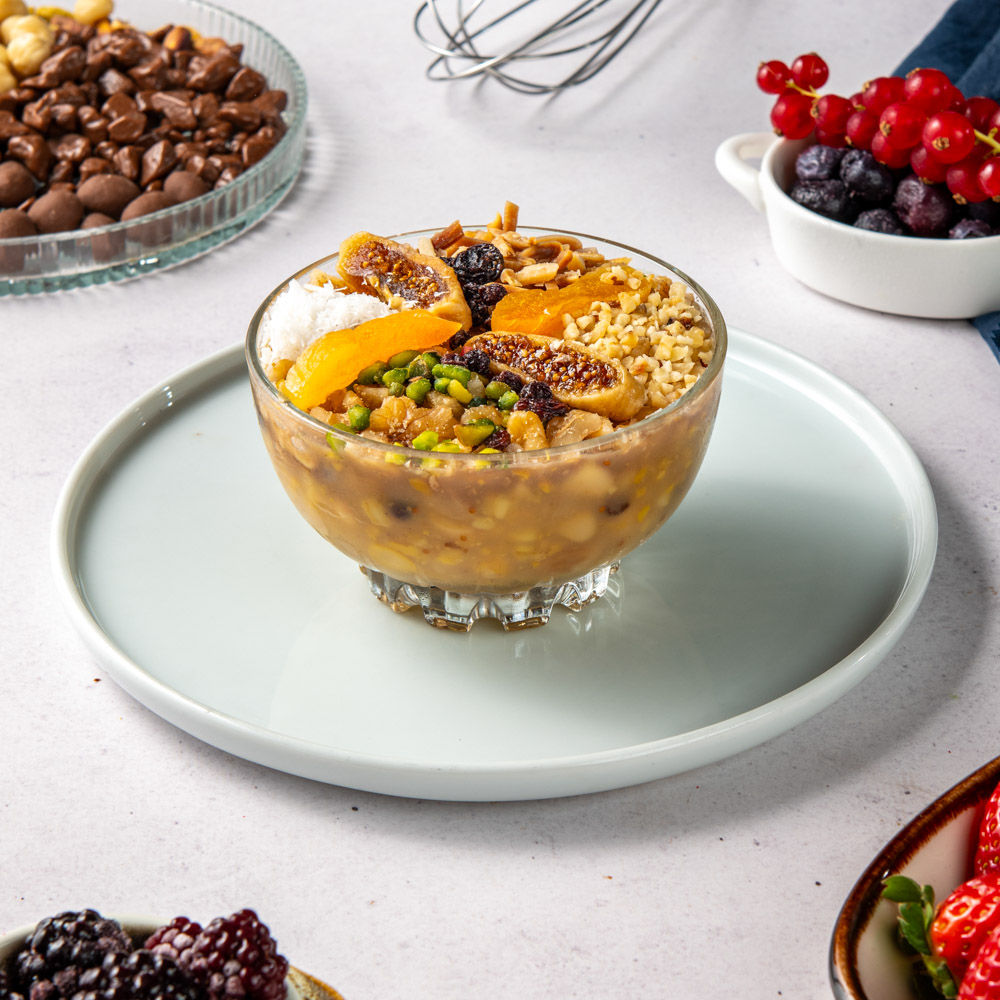 Bereketin simgesi olan aşure, buğday, bakliyat, kuru meyve ve kuruyemişlerle hazırlanır. Sağlıklı, doyurucu ve geleneksel lezzetiyle sofralarda her zaman özel bir yere sahiptir.