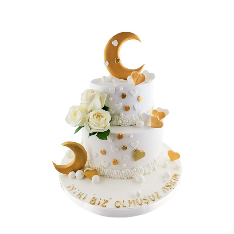 Pastanın üstünde detaylı olarak tasarlanmış ay figürleri, yıldızlar ve romantik ayrıntılar yer alıyor. Renk seçenekleri ve kişiselleştirilebilir detaylarıyla bu pasta, sizin ve eşinizin dünyasını yansıtarak evlilik serüveninizi lezzetle taçlandırıyor.