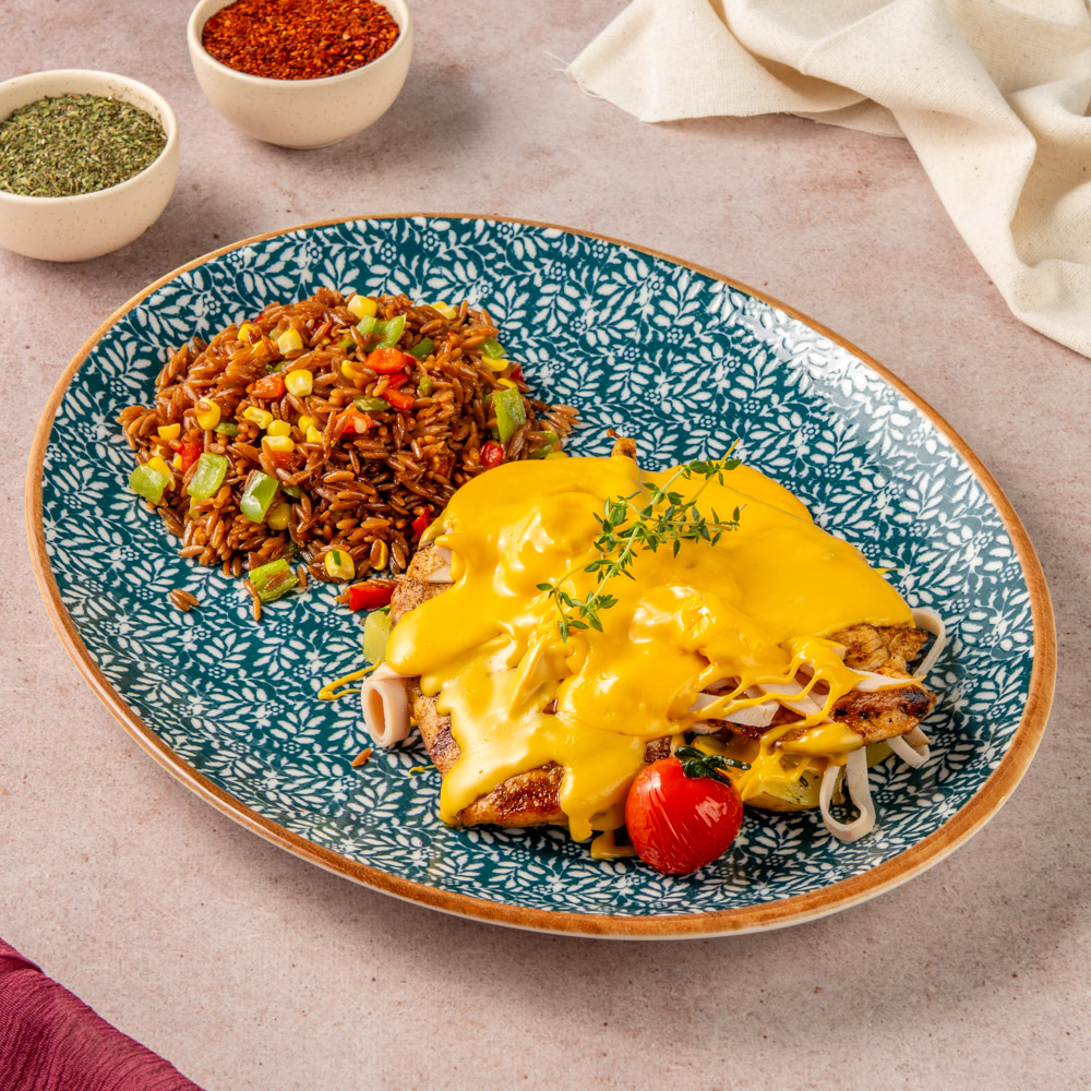 Bacon and Cheese Chicken, yumuşak tavuk etinin bacon ve eriyen cheddar peyniriyle birleştiği yoğun aromalı bir lezzettir. Tavuk filetosu hafifçe ızgarada pişirilir, üzerine çıtır bacon dilimleri eklenir ve en üste eriyen peynirle tamamlanarak hem görsel hem de tat olarak iştah açıcı bir sunum elde edilir.