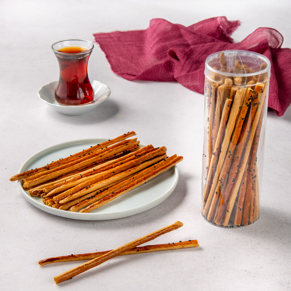 Batonsale, ince formu ve hafif kıtır dokusuyla çay ve kahve molalarına eşlik eden lezzetli bir tuzlu atıştırmalıktır. Üzerindeki hafif baharat dokunuşları ve çörekotu taneleri, her lokmada kendini hissettiren dengeli bir aroma sunar. Günün her anında tüketilebilecek hafifliği sayesinde hem pratik hem de keyifli bir alternatif oluşturur.