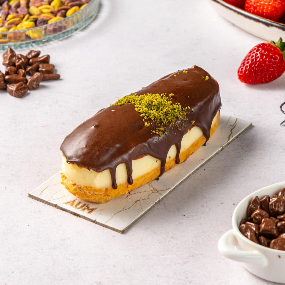 Büyük Ekler Pasta, yumuşacık hamuru ve içindeki bol kremasıyla ekler sevenlerin favorisi olacak bir tatlıdır. Üzerindeki çikolata kaplaması, her ısırıkta tatlıya ayrı bir lezzet katar. İç dolgusu hafif ama tatmin edici kıvamda olduğu için hem lezzetli hem de dengeli bir tat sunar.
