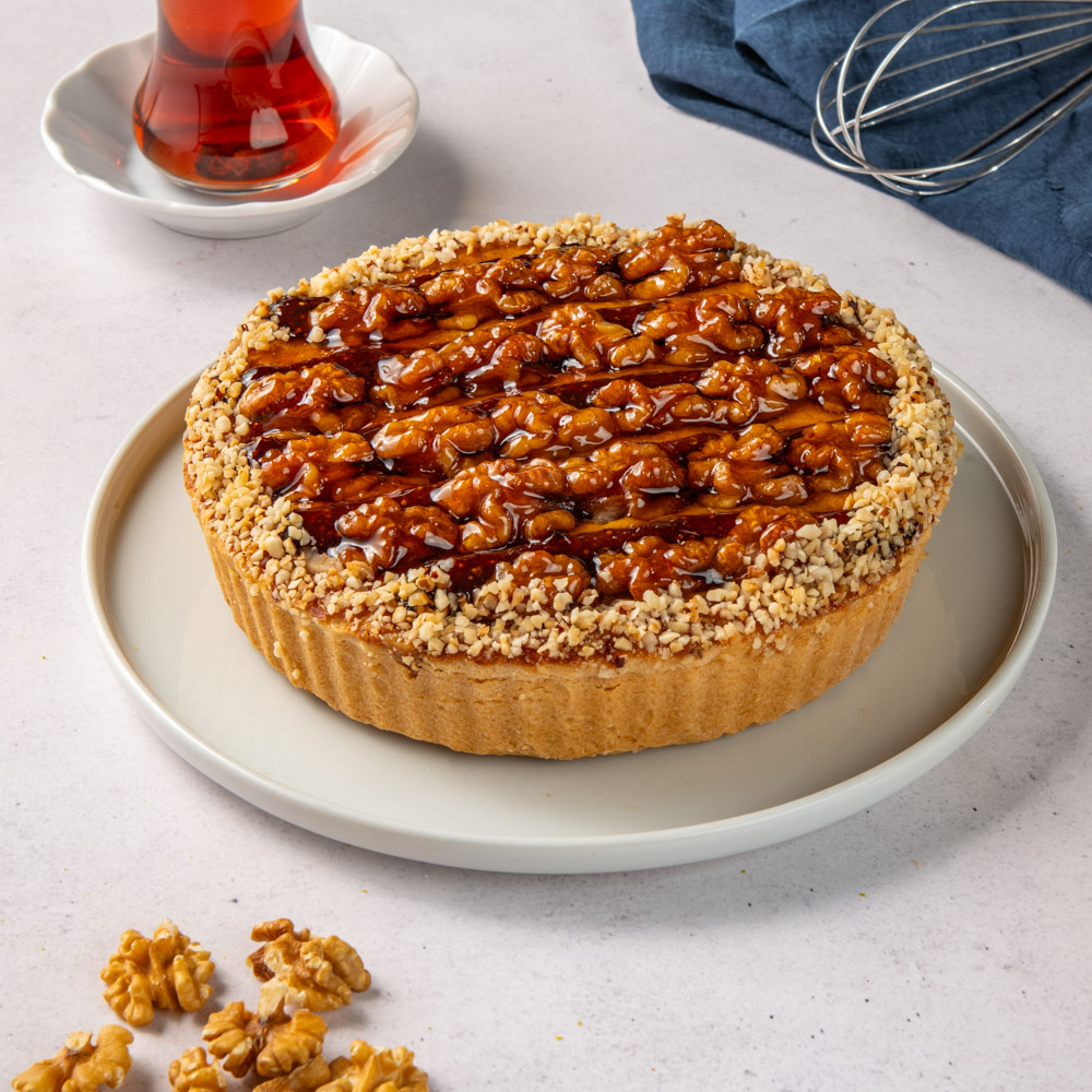 Cevizli Kek, taze ve hafif kavrulmuş ceviz parçalarının yumuşak kek dokusuyla buluştuğu dengeli bir lezzet sunar. Kekin nemli yapısı cevizlerin hafif kıtırlığını dengelerken, her lokmada tatlıya zengin bir aroma katar. Kuruyemiş tadı kekin karakterini öne çıkarır ve geleneksel tatları sevenler için keyifli bir deneyim oluşturur.