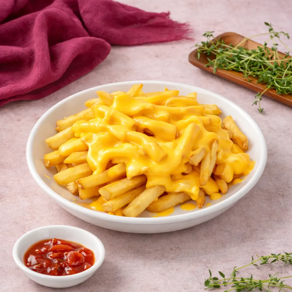 Cheddar peyniri, parmak dilim patates kızartması