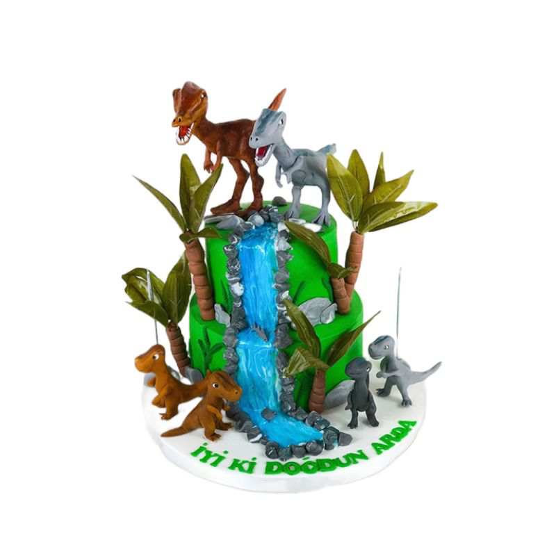 Dinazor Konseptli Doğum Günü Pastası, küçük paleontologların ve dinazor tutkunlarının kalbini çalacak eğlenceli bir seçenektir. Renkli ve sevimli dinazor figürleri, fosil detayları ve tropikal bitkilerle süslenmiş bu özel pasta, doğum günü kutlamalarınıza pröhistorik bir dokunuş katıyor.