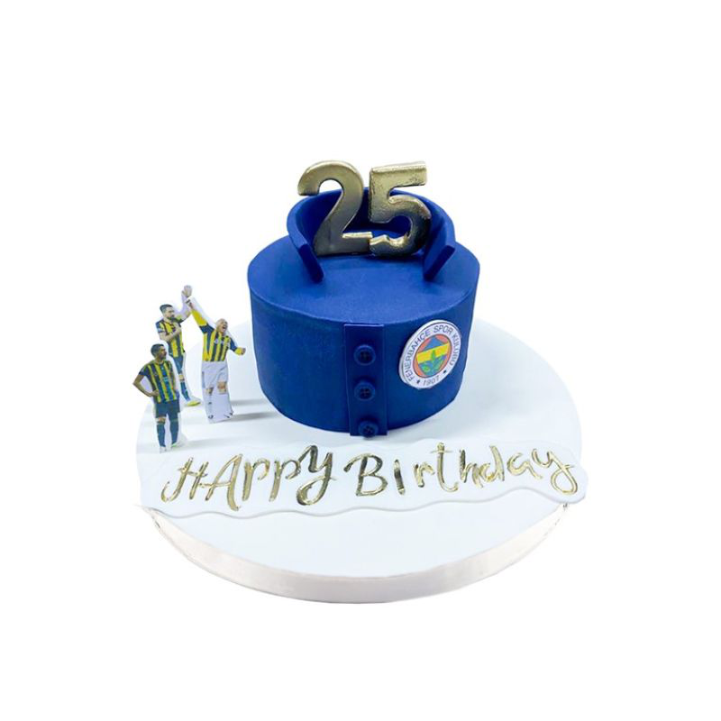 Pastanın kenarları, Fenerbahçe'nin renkleriyle uyumlu şeker hamuru detayları ile süslenmiştir. Tribünleri andıran çizgiler, sarı-lacivert coşkuyu pastaya taşırken, futbol sahasını simgelercesine tasarlanmış detaylar pastaya spor dolu bir atmosfer kazandırır.