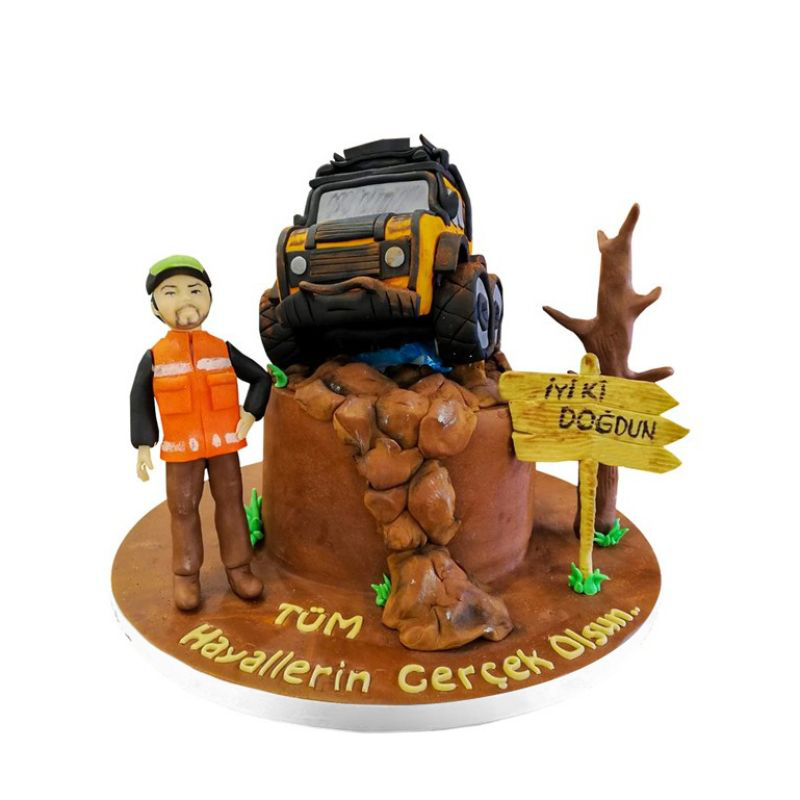 Üzerindeki renkli fondan kaplamalar, arazi aracı figürü ve doğal görünümlü detaylar pastayı adeta bir doğa kaçamağına dönüştürüyor. Pastanın tasarımı, arazi aracı tutkusunu ve macera sevgisini yansıtarak, özel bir hediye olma özelliği taşıyor. Figürlü Arazi Arabası Butik Pastası, sıradışı bir temayı lezzetle birleştirerek, özel günlerinizi unutulmaz kılacak bir seçenektir.