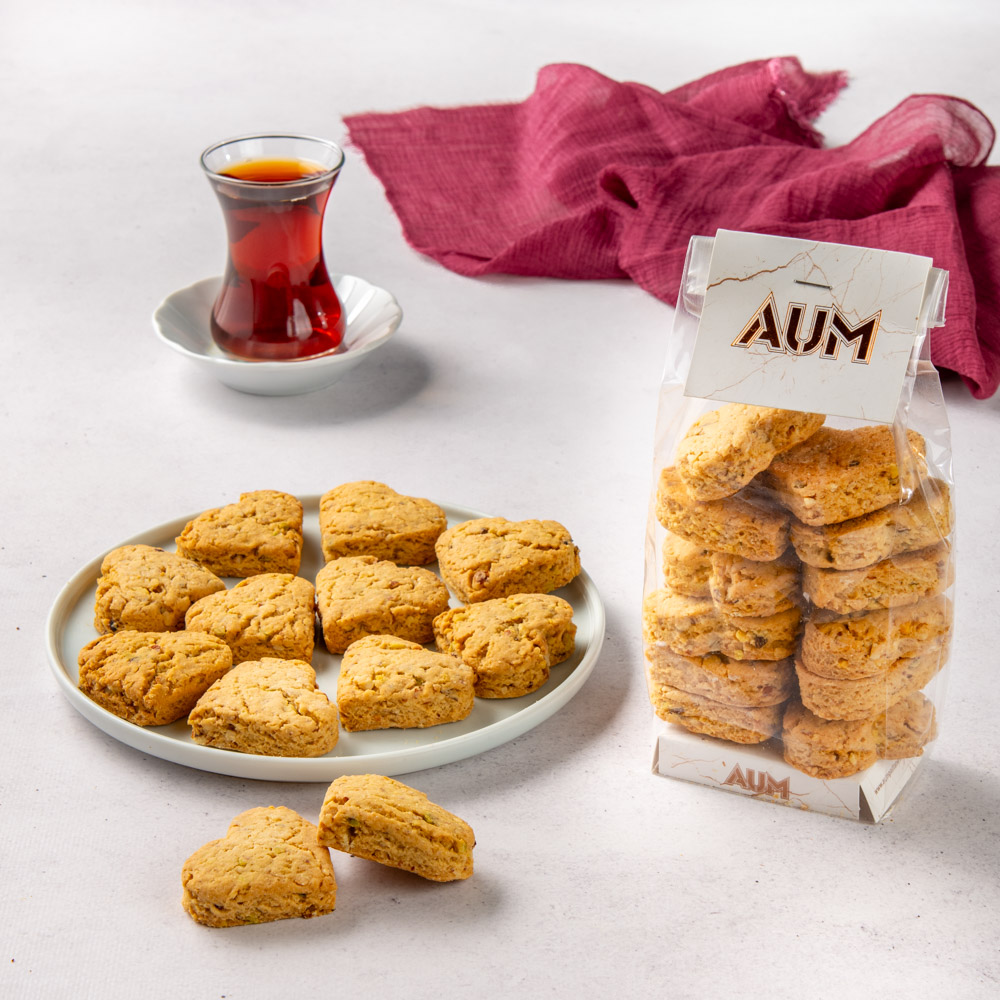Fındıklı Kalpli Biscotti, geleneksel biscotti kıtırlığını fındığın doğal aromasıyla birleştirerek keyifli ve özgün bir tat sunar. Kalp formundaki sevimli görünümü, ürünü hem özel günlerde hem de günlük tüketimde tercih edilen bir atıştırmalık haline getirir. İçindeki fındık parçaları her lokmada zengin bir aroma bırakırken, biscotti’nin karakteristik sert dokusu kahve ve çayla mükemmel uyum sağlar.