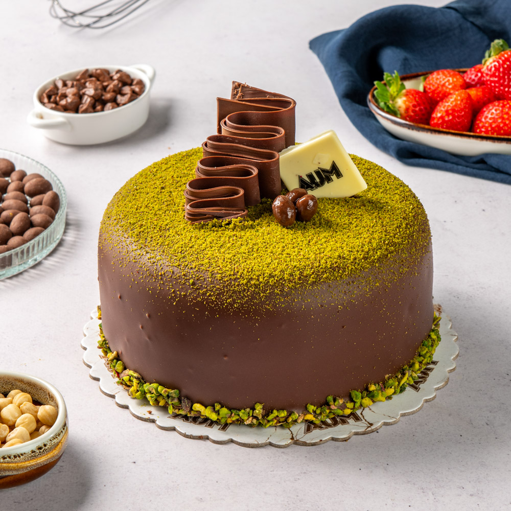 Fıstıklı Çikolatalı Pasta, göz alıcı görüntüsüyle de dikkat çeker. Üzerindeki Antep fıstıklarıyla süslenmiş çikolata tabakası, pastayı sadece lezzetiyle değil, aynı zamanda zarafetiyle de öne çıkarır.