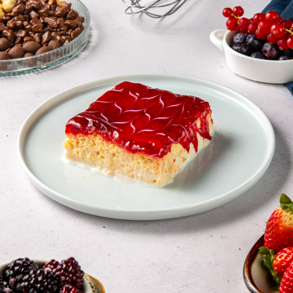 Üç sütle ıslatılan yumuşacık kekin üzerine frambuaz sosu eklenerek hazırlanan Frambuazlı Trileçe, hafifliği ve ferah tadıyla meyveli tatlı severlerin vazgeçilmezidir.