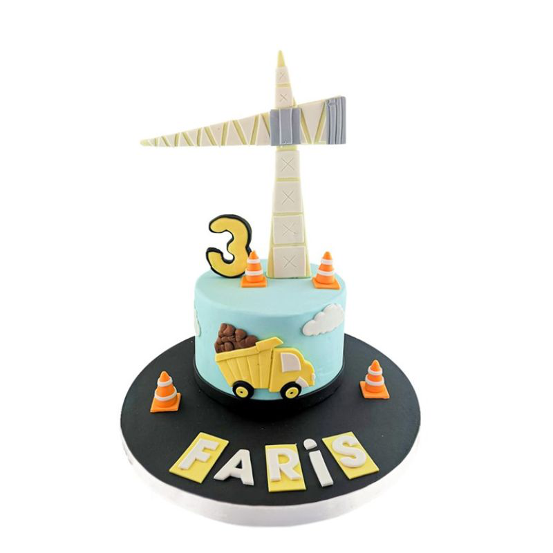 Pastanın üstünde detaylı olarak tasarlanmış minyatür inşaat araçları, sarı kasklar, bina blokları ve kişiselleştirilebilir detaylar bulunuyor. Renk seçenekleri ve özel tasarım öğeleriyle kişiselleştirilebilen bu pasta, doğum günü çocuğunuzun veya sevdiklerinizin inşaat dünyasına olan ilgisini yansıtarak eğlenceli bir atmosfer yaratır.