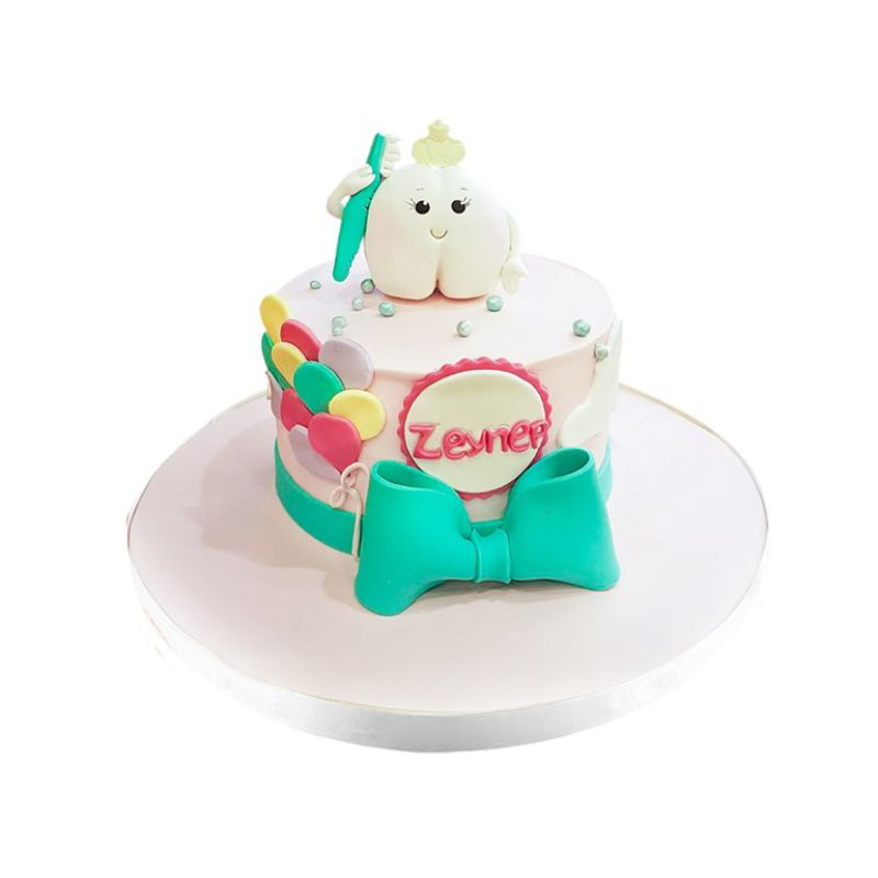 Pastanın üzerinde yer alan diş detayları, bebeğinizin diş buğdayı deneyimini temsil eder. Minik diş figürleri, pastaya sevimlilik ve özel bir anlam katar.