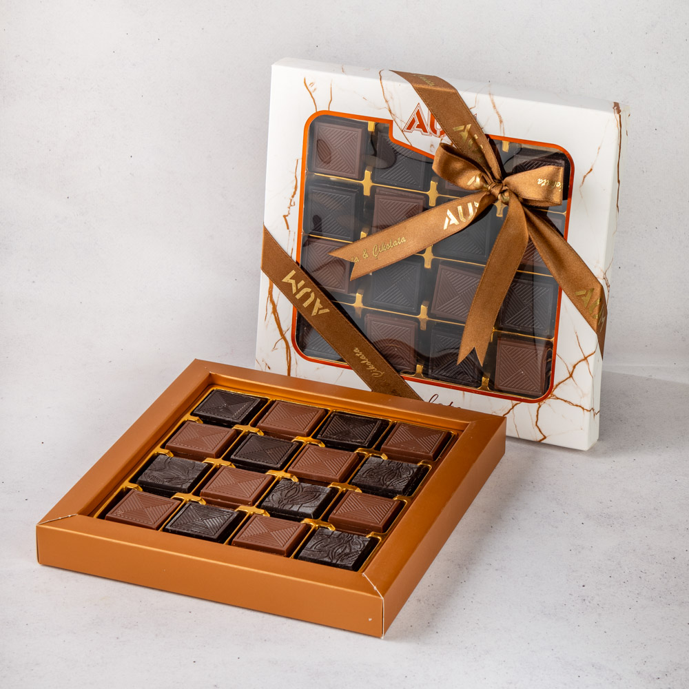 Madlen çikolata AUM Pastanesi'nde! El yapımı dolgulu çikolata bonbonları. Ganaj, karamel, fındık dolgulu. Hediye paketi mevcut.