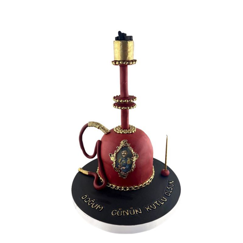 Pastanın üstünde detaylı olarak tasarlanmış nargile figürleri, renkli tütün yaprakları ve hoş bir duman efektiyle süslenmiş. Renk seçenekleriyle kişiselleştirilebilen bu pasta, nargile keyfini özel bir şekilde kutlamak isteyenler için ideal.