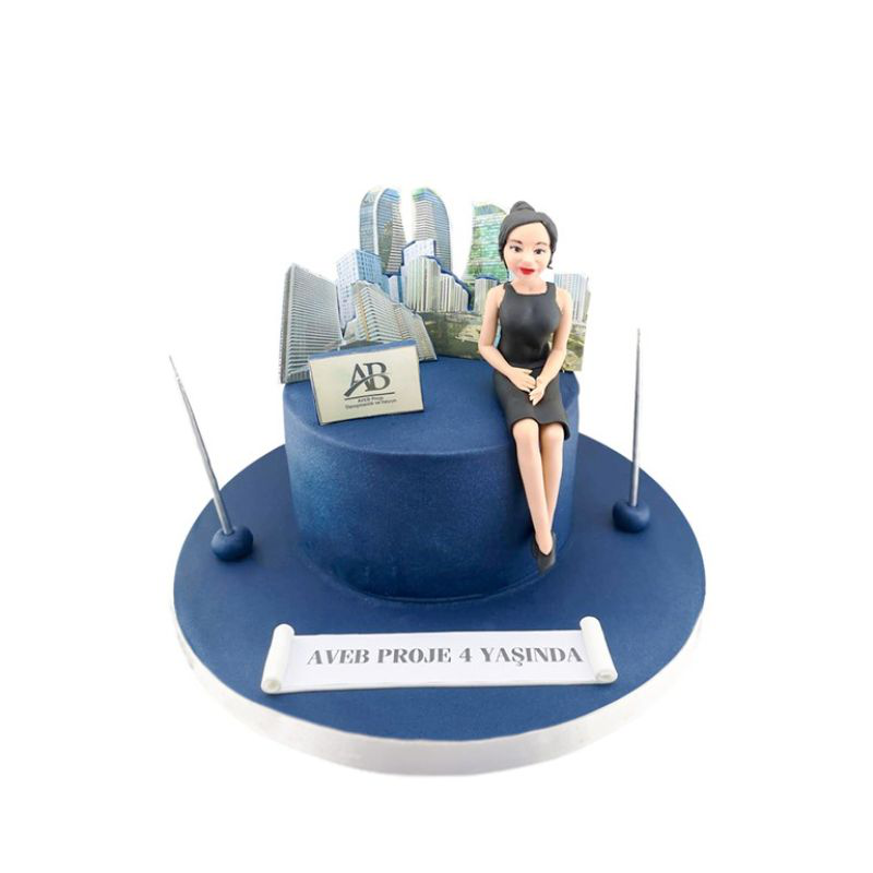 Pastanın üstünde, özel bir proje yönetimi simgesi olarak tasarlanmış minik bir proje müdürü figürü yer alıyor. Bu detaylı figür, liderlik ve organizasyon becerilerini temsil ederken, pastaya özel bir dokunuş katıyor. Renkli şeker hamurları ve detaylı tasarımı, projelerdeki başarıların kutlanmasını anımsatıyor.