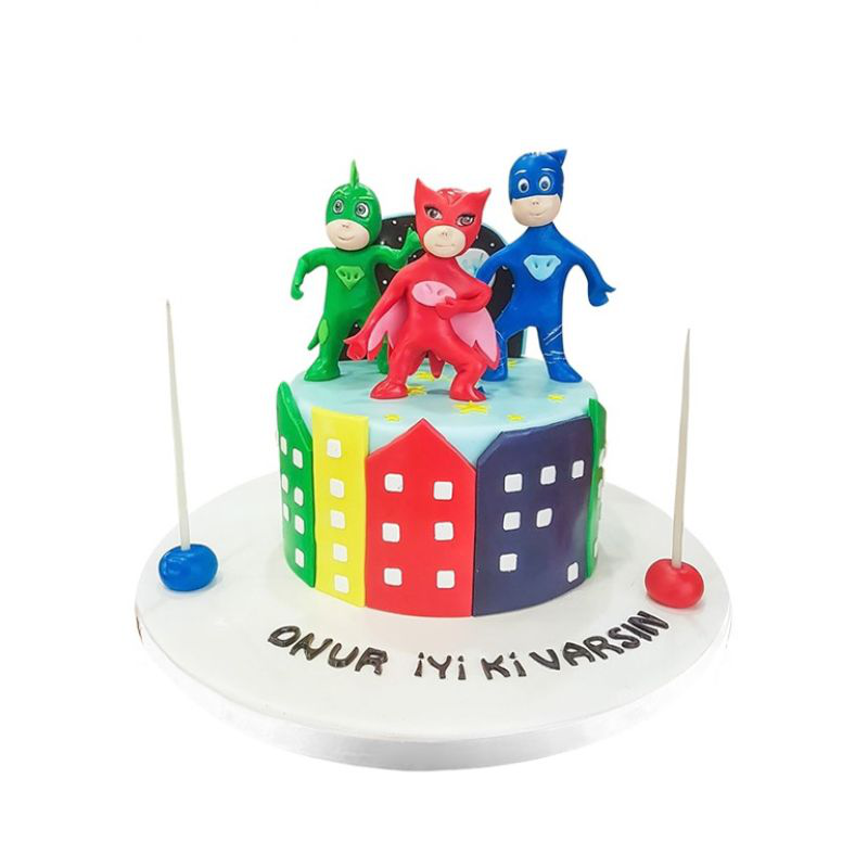 Renkli Maskeliler Doğum Günü Pastası, sevimli süper kahramanlar Catboy, Owlette ve Gekko'nun eğlenceli dünyasını yansıtarak çocuğunuzun doğum gününü renklendirecek özel bir pasta seçeneğidir. Bu pasta, kahramanlık teması ve renkli detayları ile çocukların hayal dünyasına hitap eder.