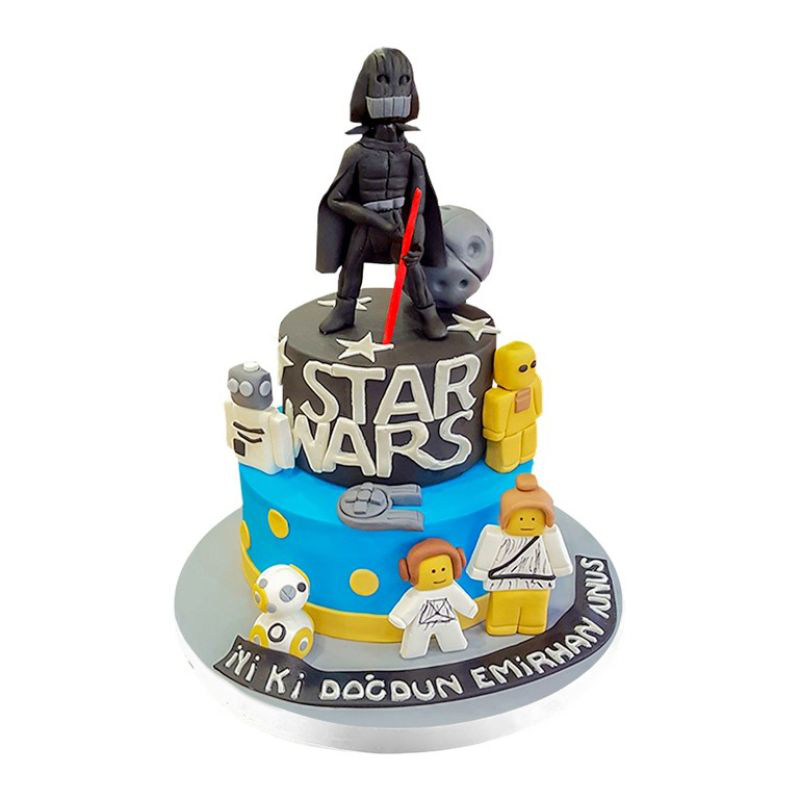 Pastanın üzerindeki renkli fondan kaplamalar ve Yıldız Savaşları temalı figürler, doğum günü çocuğunuz veya Yıldız Savaşları hayranı dostlarınız için gerçek bir sürpriz olacak. Işınlı kılıçları, ikonik karakterleri ve uzay gemilerini içeren bu pasta, Yıldız Savaşları evrenine duyulan sevgiyi ve hayranlığı kutlamak için mükemmel bir seçenek. Yıldız Savaşları Doğum Günü Pastası ile kutlamalarınız, galaksiye özgü bir atmosferde geçecek ve unutulmaz anılara dönüşecek.
